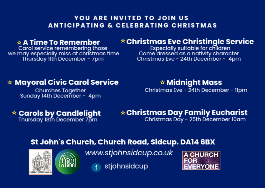 We would be very pleased to see you at any of our services or events – we have lots going on – please click on ‘What’s On’ above – and if you would like to keep up to date you could also follow us on Facebook @stjohnssidcup and Youtube.